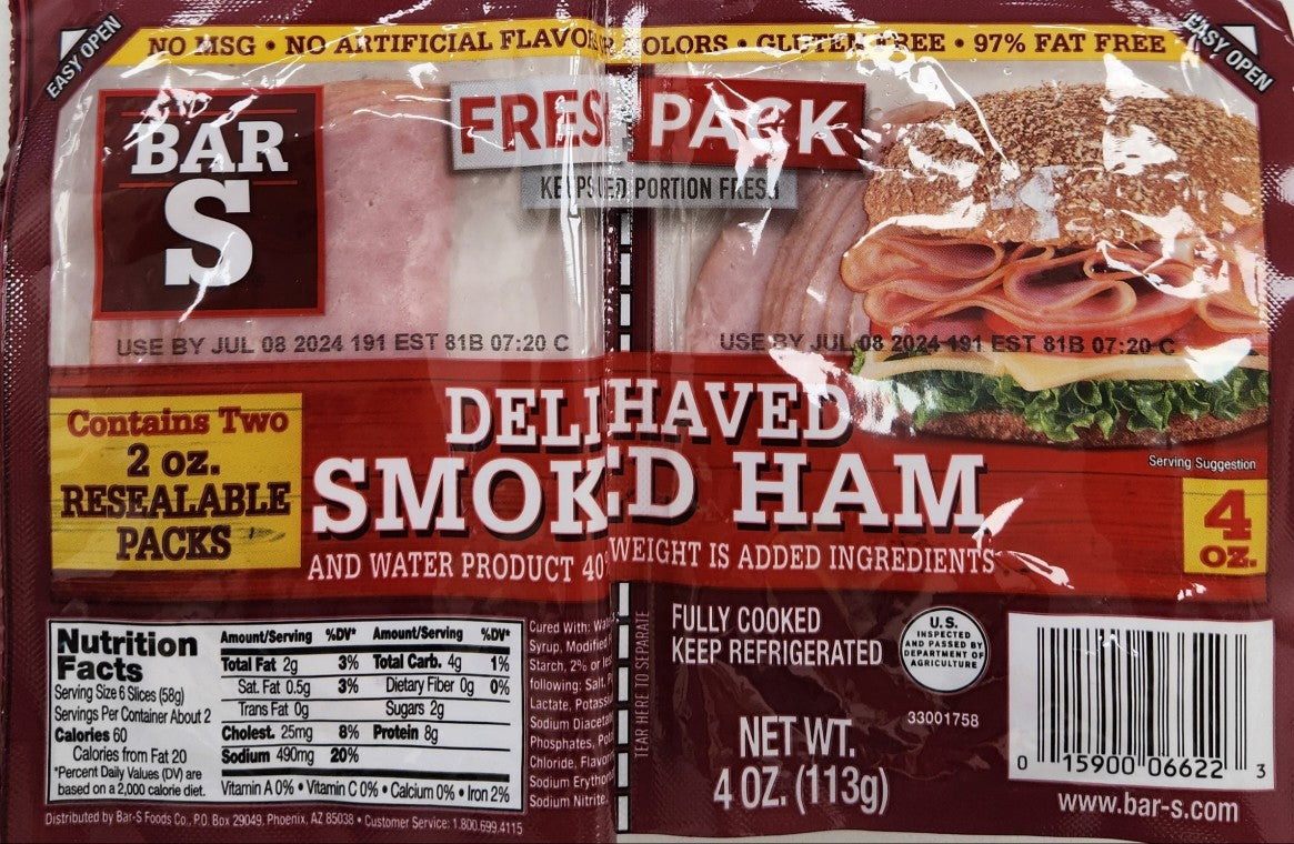 Bar S Deli Shaved Smoked Ham 4 oz